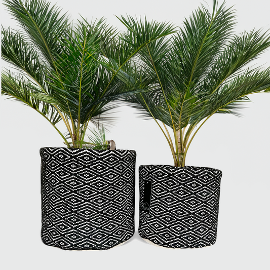2-Pack Black & White Woven Fabric Storage Baskets – Cotton Blend, Large & Medium Sizes