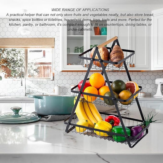 3 Tier Fruit Basket Handle Holder Rack Vegetable Bowl Storage Stand Dining Unit