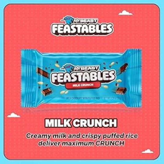 10 x Feastables MrBeast Milk Crunch Chocolate Bars with Puffed Rice – (60g Each)