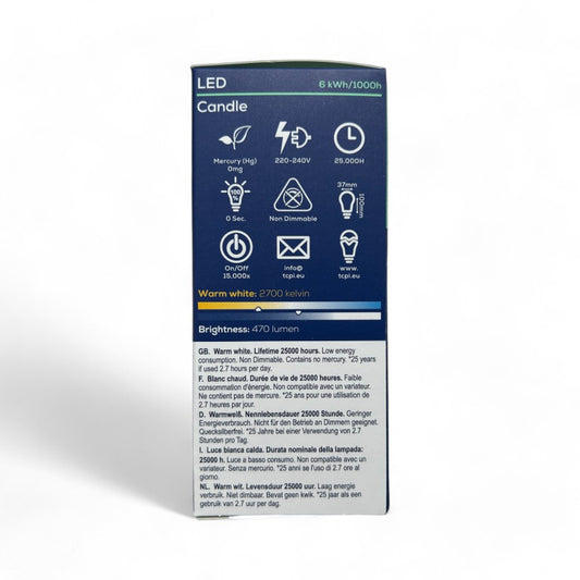 TCP - Candle Light Bulb - 5.1W SES/E14 LED Non-Dimmable - Warm White 4-pk
