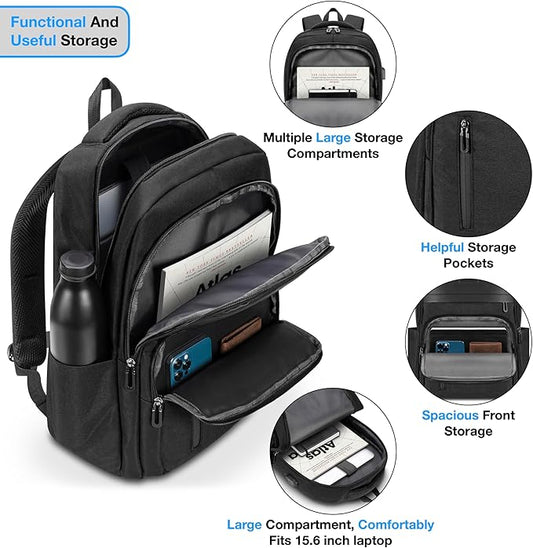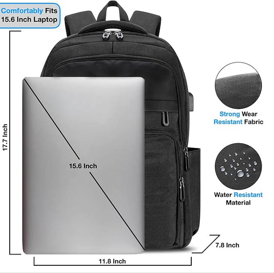 Urban4Design Laptop Backpack with USB Charging Port – 15.6 Inch, Travel, Work Rucksack for Men & Women, Water Resistant - Black