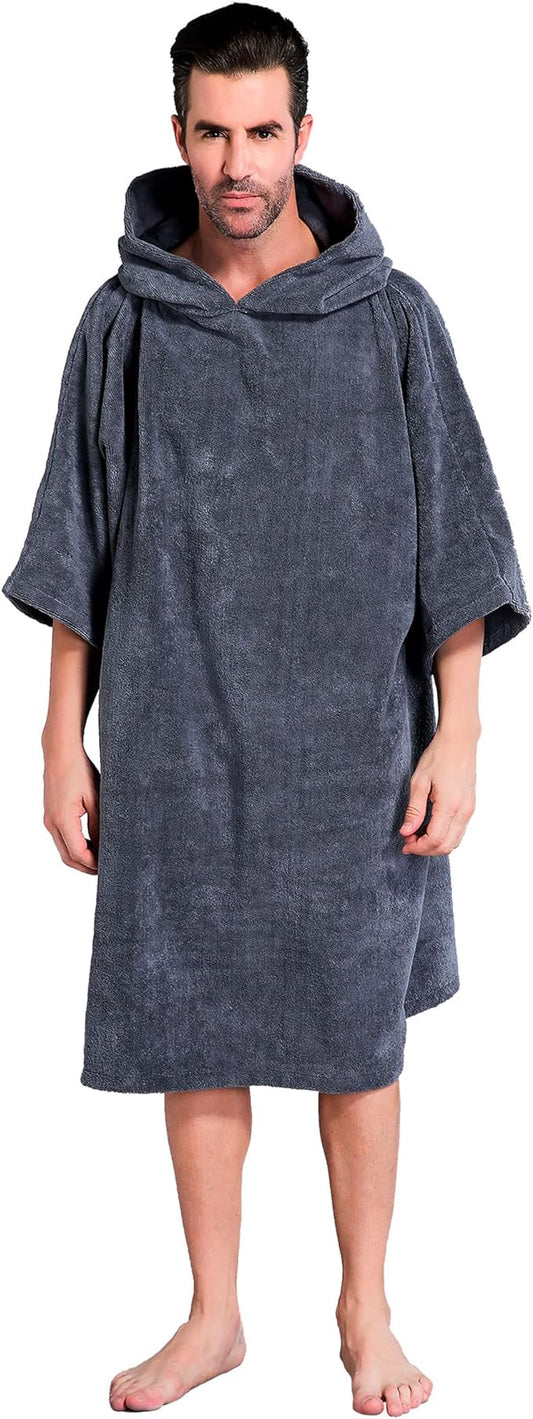 Winthome - Unisex Changing Bath Robe, Surf Poncho Towel With Hood - M Grey