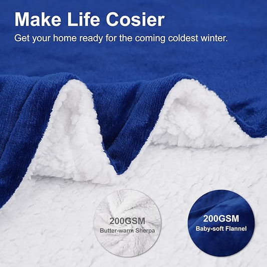 Winthome Queen Sized Blue Sherpa Fleece Throw Blanket (Blue, 228x228cm)