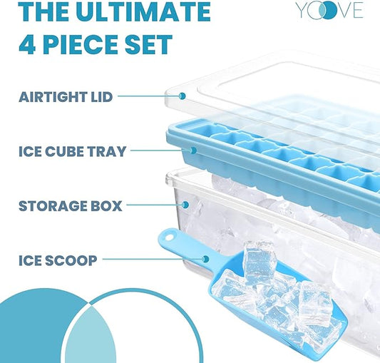 Yoove - Ice Cube Maker With Lid & Bin For Cocktails & Whisky BPA Free Silicone Container, Nugget Tray With Ladle