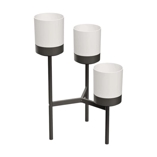 Bloomie Black Planter Stand with 3 White Plant Pots Metal Frame by Prosperplast