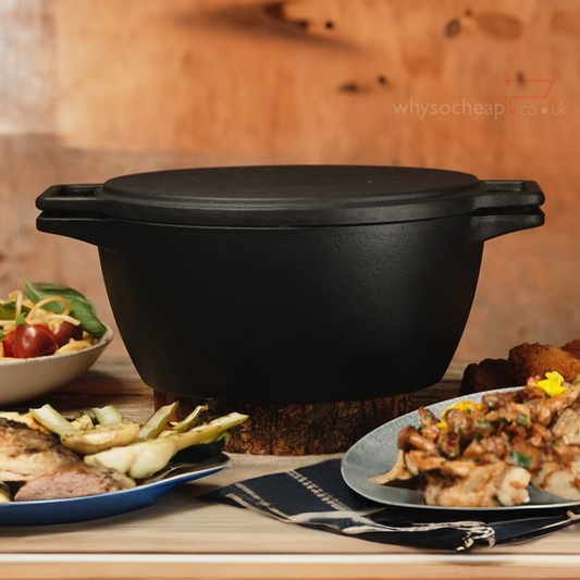CrushGrind® 4-in-1 Cast Iron Dutch Oven 6.5L – Casserole / Grill Pan, Bread Dome & Pizza Stone in One