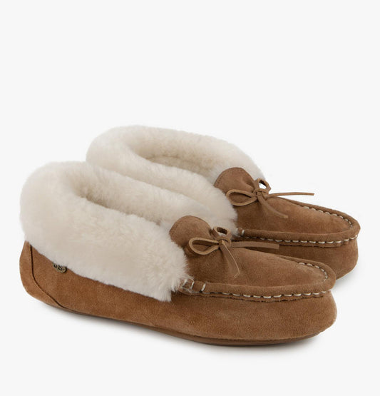 Just Sheepskin Francesca Sheepskin Moccasin Slippers in Chestnut Brown - Size UK 4 / EUR 37