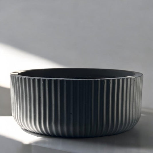 Luxury Designer Home Concrete Ribbed Planter - Grey, 24x24x10cm