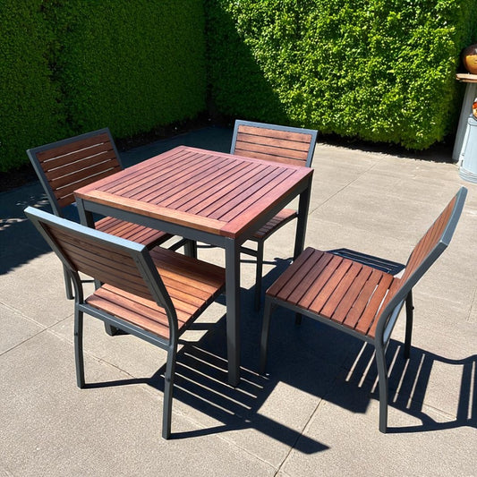 Premium 4 Seater Hardwood Outdoor Garden Patio Dining Set With Metal Frame – Square Table Stackable ChaIrs Brackenstyle Dorset