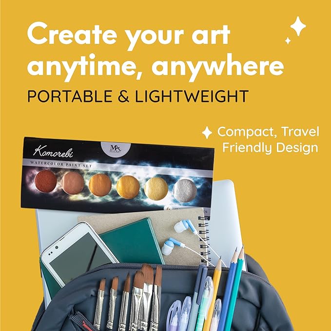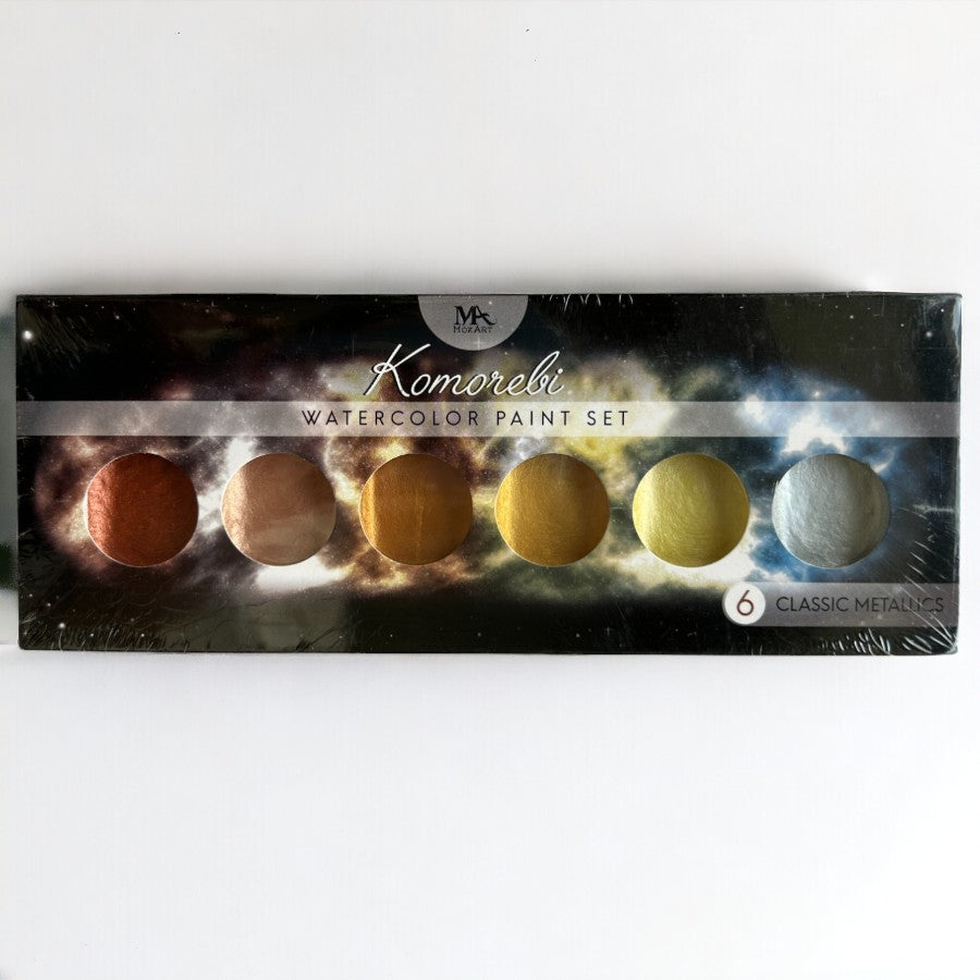 6 CLASSIC Metallic COLOURS - MozArt Metallic Komorebi Watercolour paint set features pearlescent colours, each carefully selected by a team of artists - These Japanese style watercolours are highly pigmented and give a lustrous effect for that rich, shimmery color - The perfect set to jazz up your art supplies - Easy to blend and fun to use especially for painting, calligraphy, card making and journaling.