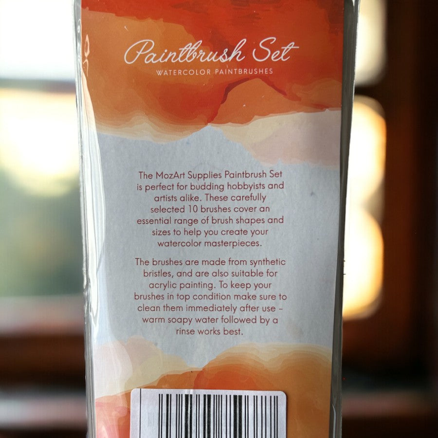 10pc paintbrush set. Synthetic bristles suitable for acrylics and watercolour paints.