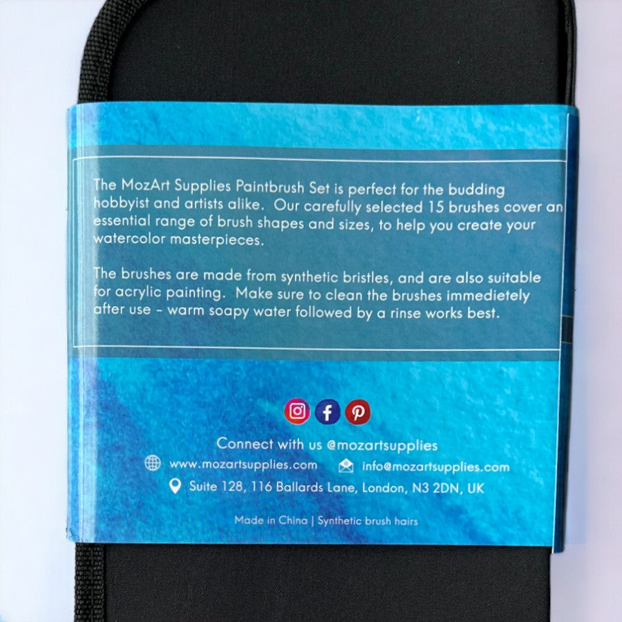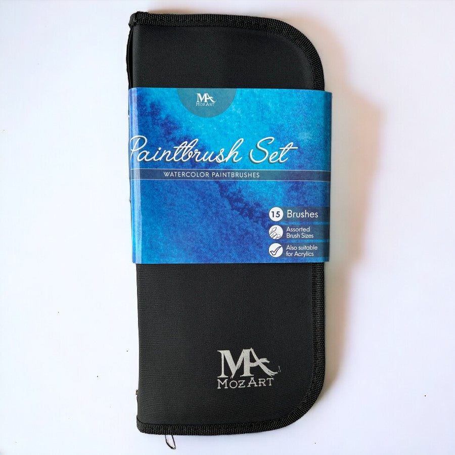 MozArt - Watercolour Brushes - 15 Pack with Premium Organizing Case