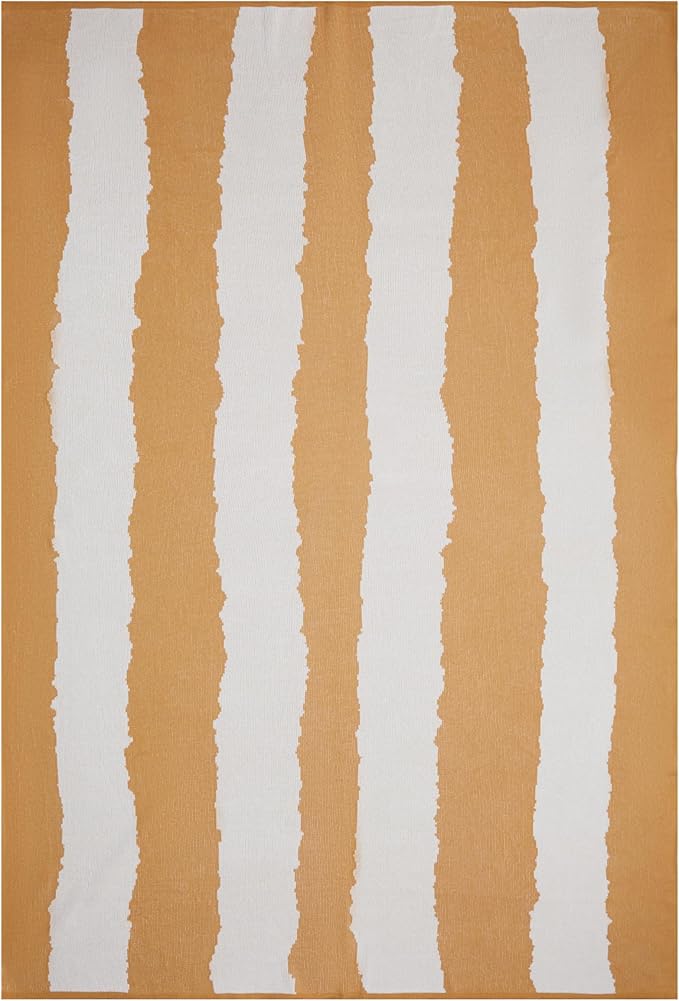 Snuggery Luxury Organic Cotton Knitted Throw Blanket 180 x 125cm - Milos Beige Striped